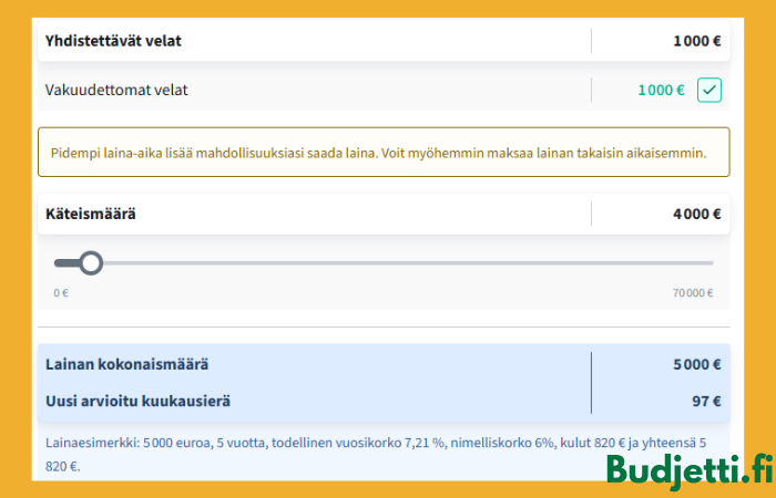 Eli haetun 4 000 euron lainan sijaan, Axolainan järjestelmän mielestä olisikin pitänyt hakea 5 000 euron lainaa.