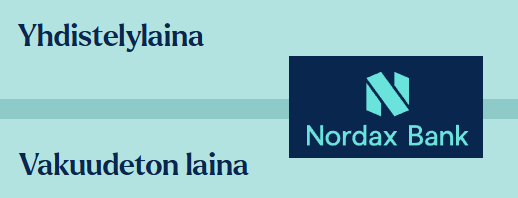 Nordaxin lainavalikoimaan kuuluvat yhdistelylaina sekä vakuudeton kulutusluotto.