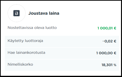 Vaikka omat kokemukseni Instabankista ovat sinänsä olleet hyviä, niin on tämä korkoasia sellainen, että hieman varovainen olisin Instabankin kanssa, jos harkitsisin sitä isompaa lainaa varten.