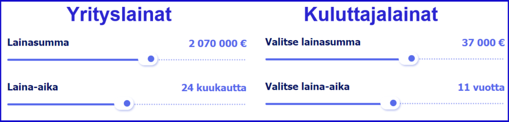 | Yrityslainojen lainasummat | 500€ – 10 000 000€ |