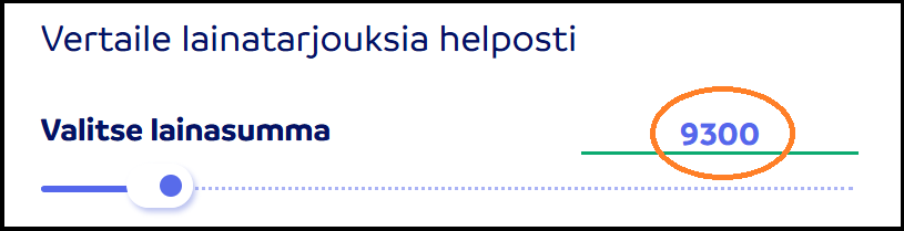 Halutan lainasumman voi valita kirjoittamalla tarkemmin kuin vierityspalkin avulla