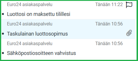 Taskulainan lähettämissä sähköposteissa näkyi lähettäjänä "Euro 24 asiakaspalvelu". Euro 24 on entinen lainapalvelu, jolla on yhteys tähän nyt tarjottavaan Taskulainaan. Varmaankin Taskulaina tulevaisuudessa muuttaa viestien lähettäjäksi esimerkiksi "Taskulaina asiakaspalvelu".