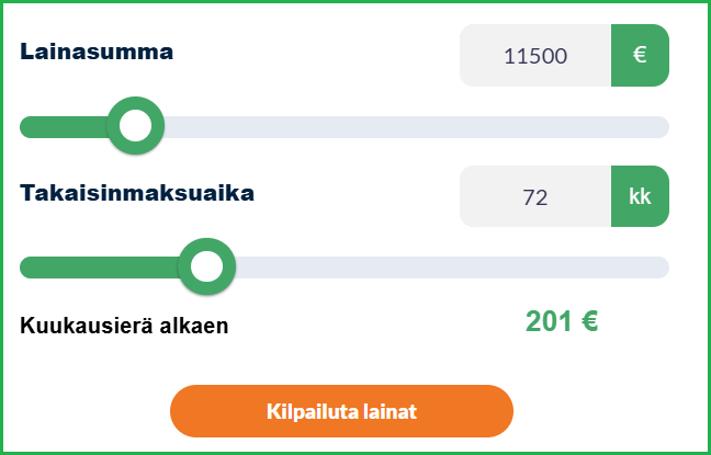 Lainasummiin ja laina-aikoihin liittyen Taskulainan verkkosivustolla on jo olemassa mahdollisuus kilpailuttaa lainahakemus, mutta sen kohdalla minimisumma onkin sitten 500 euroa ja lyhyin mahdollinen laina-aika vuosi. Olisi siis kiva, jos Taskulainan tarjonnassa olisi esimerkiksi 250 euron laina 2 kuukauden laina-ajalla.